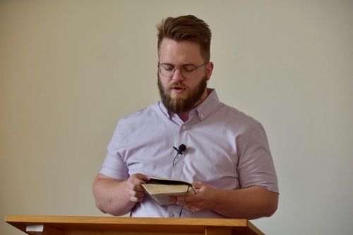 The service begins with some announcements from a Deacon and a welcome from Pastor Gwydion. We will sing a hymn and then Pastor Gwydion will give a children’s story (in the mornings only). There will be a Bible reading, some more hymns and a prayer or two. Then, Pastor Gwydion will preach a sermon from the Bible. He preaches through books of the Bible and occasionally will do a topical sermon series. Go to the ‘Sermons’ page to hear the sermons.